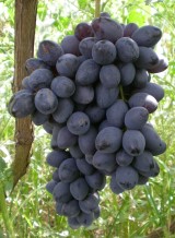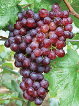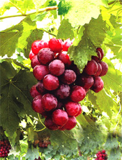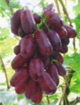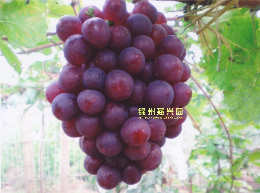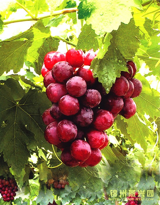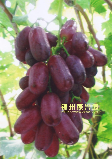 美国红提(红地球) 最大粒重可达22克,9月下旬成熟,极丰产,糖度18以上,品质极佳,不落粒,特耐贮运。 |